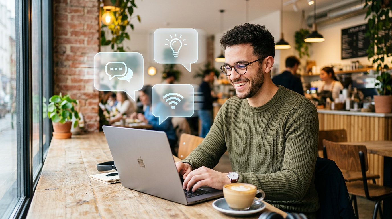 3. Dela en liten observation "Jag satt precis på ett café och hörde den bästa konversationen mellan två pensionärer. Det fick mig att tänka på hur sällan vi faktiskt pratar med okända." Det här känns personligt och äkta, inte som en kopierad rad.